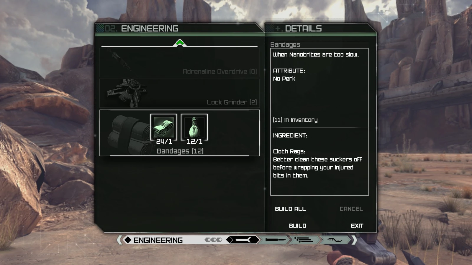 Bandages are a quick-use item featured in RAGE. They are used to heal Nicholas Raine of injuries in combat, and are considered both engineering items and ingredients. Bandages can be found in different locations throughout the Wasteland, crafted using the corresponding schematic, or purchased from vendors for $15.