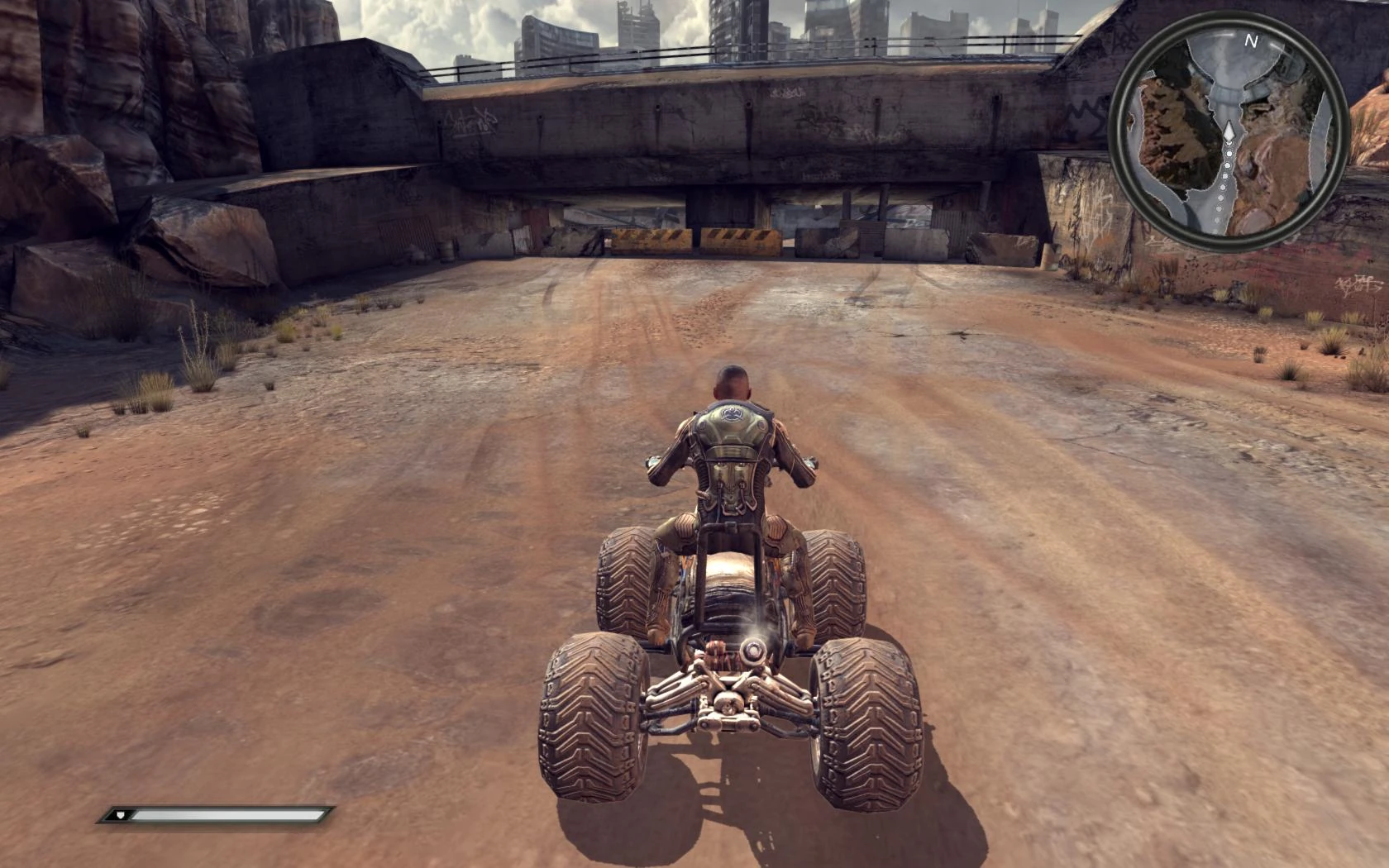 After accepting the quest, jump into your buggy and head east, following the mini-map line of direction. Avoid any bandit vehicles on your way there and use boost liberally to get there as fast as you can, since right now, you do not have a weapon on your vehicle.