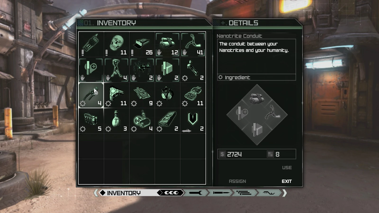 The Nanotrite Conduit is an ingredient used to create engineering items in RAGE. It can be found throughout the Wasteland, either as loot present in different locations including the sewers (Wasteland Sewer Missions DLC required) or as a quest reward. It can also be bought from vendors.