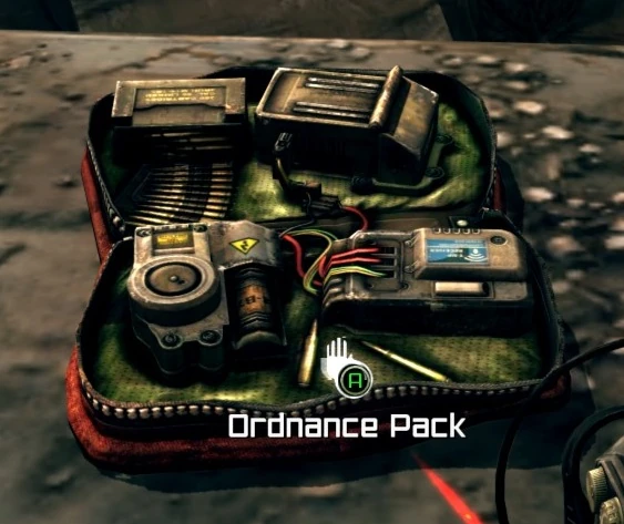 The Ordnance Pack is an ingredient used to create engineering items in RAGE. It can be found in different locations throughout the Wasteland or bought from vendors.