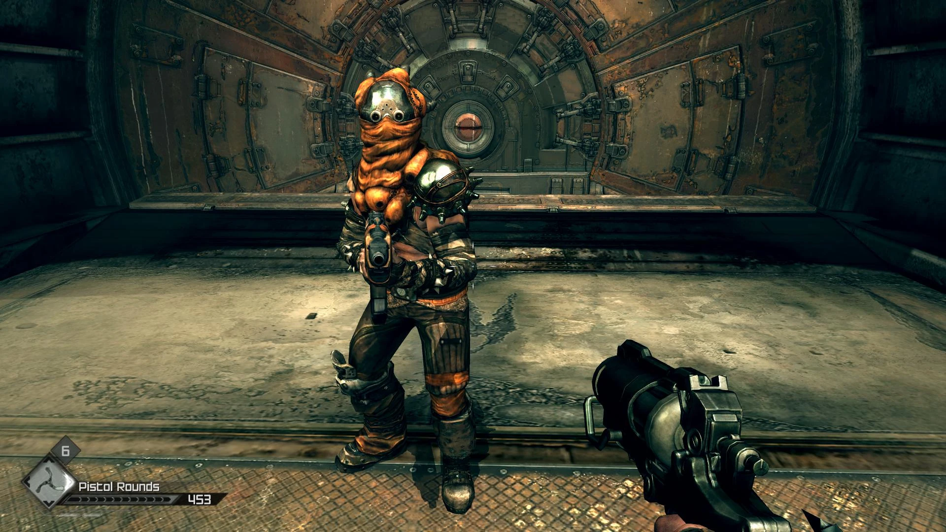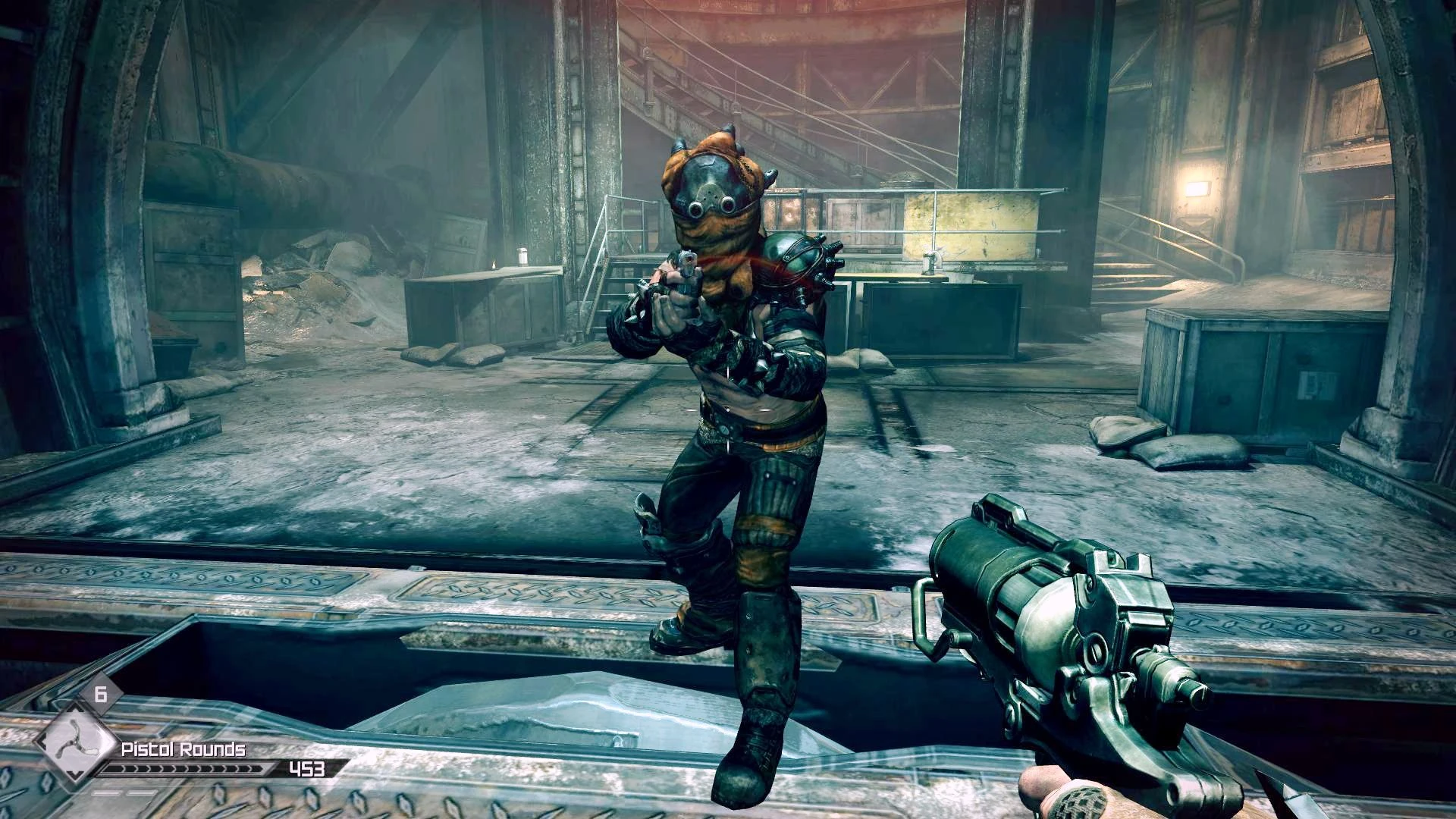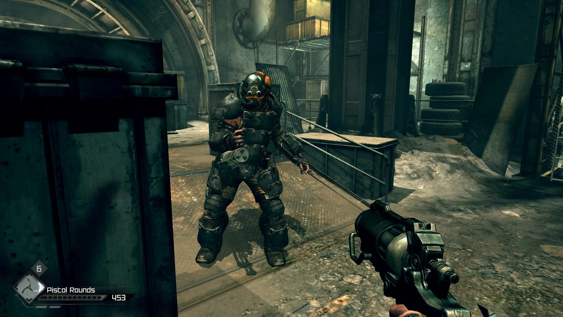 Heavily armored and carrying a shotgun, those guys are only seen in the Wasteland Legends co-op. They are very dangerous and act almost like the Shrouded Miniguns (see below) except they only shoot when they are close to the enemy. They are generally somewhat easier to dispatch than the Miniguns since they rarely fire if the player keeps their distance.