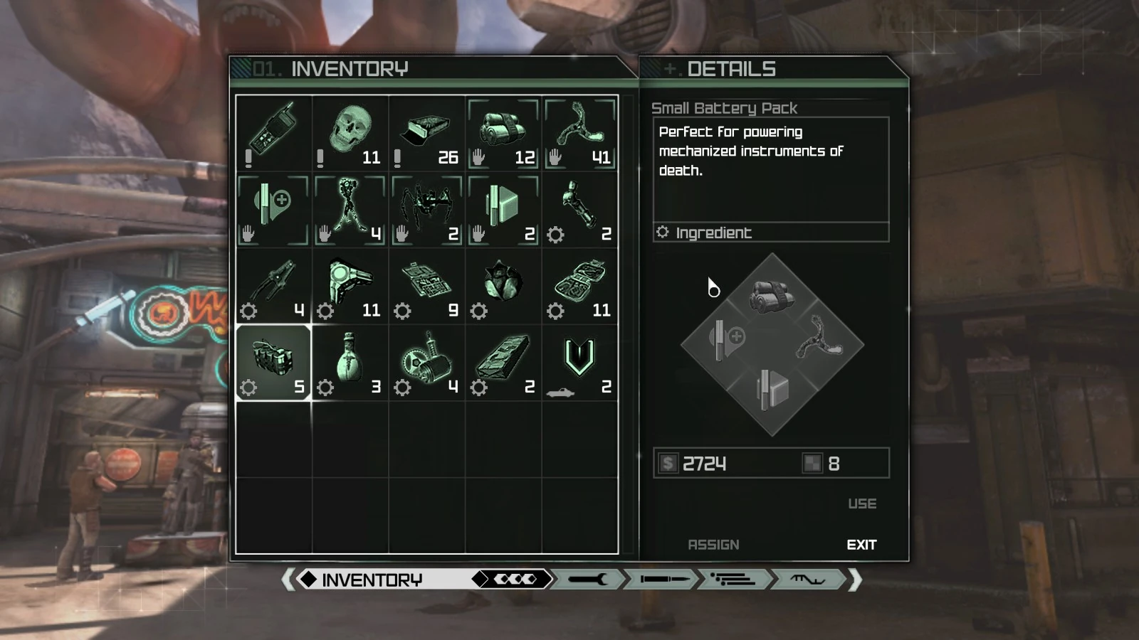 The Small Battery Pack is an ingredient used to create engineering items in RAGE. It can be obtained throughout the Wasteland, either as loot present in different locations including the sewers (Wasteland Sewer Missions DLC required) or a quest reward, and looted from fallen enemies. It can also be bought from vendors.