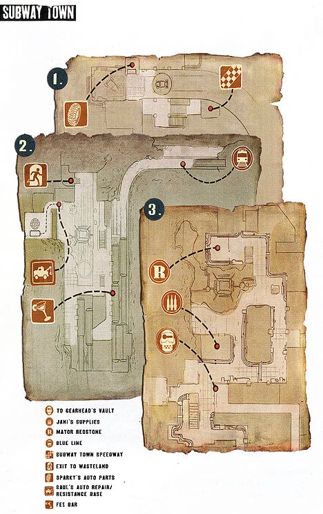Redstone, the permanent Mayor of the settlement, runs the town as he sees fit — coldly and remorselessly. Indeed, the citizens of Subway Town show distaste and often fear for Redstone and his hired guns, but openly state that they prefer his dominion to the Authority residing in nearby Capital Prime — Redstone may seem to be a tyrant, but the town has its complications.