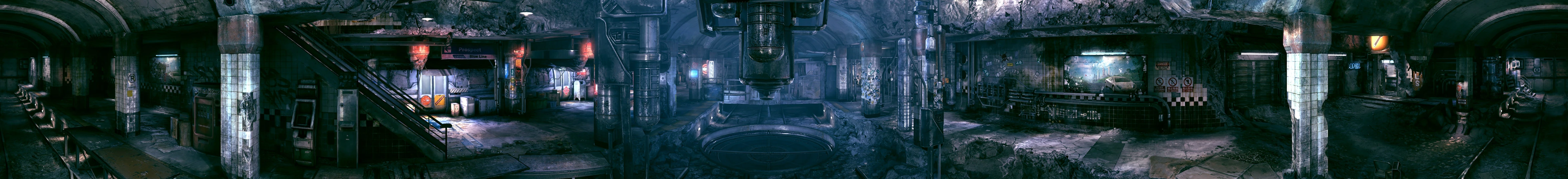 Far from the warmer, more open atmosphere of Wellspring, Subway Town dominates the landscape of the Eastern Wasteland. It can be said that Subway Town is, in fact, the antithesis of Wellspring — rather than appearing open and looking back to the days of the American West, Subway Town is, in every sense, modern, with the cold porcelain, neon lights, and trance-like music of the former subway system being perhaps the most vivid feature of it.