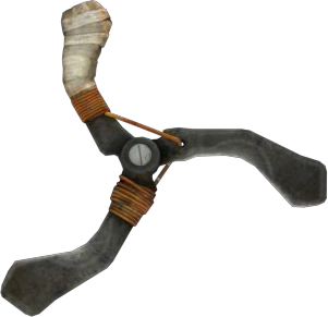 The Wingstick is a quick-use item featured in RAGE and appearing in the Announce Trailer for RAGE 2. This boomerang-like projectile is a type of weapon and an engineering item. It appears to be a three-bladed propeller with cloth on one of the blades, serving as a handle. It is hugely powerful, killing most basic enemies in a single hit, with only a few more needed for heavily armored targets.